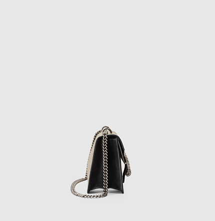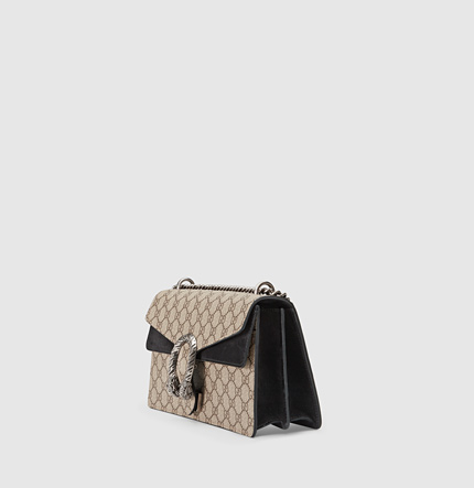 A structured GG supreme canvas bag with our textured tiger head spur closure. The sliding chain strap can be worn multiple ways, changing between a shoulder and a top handle bag.