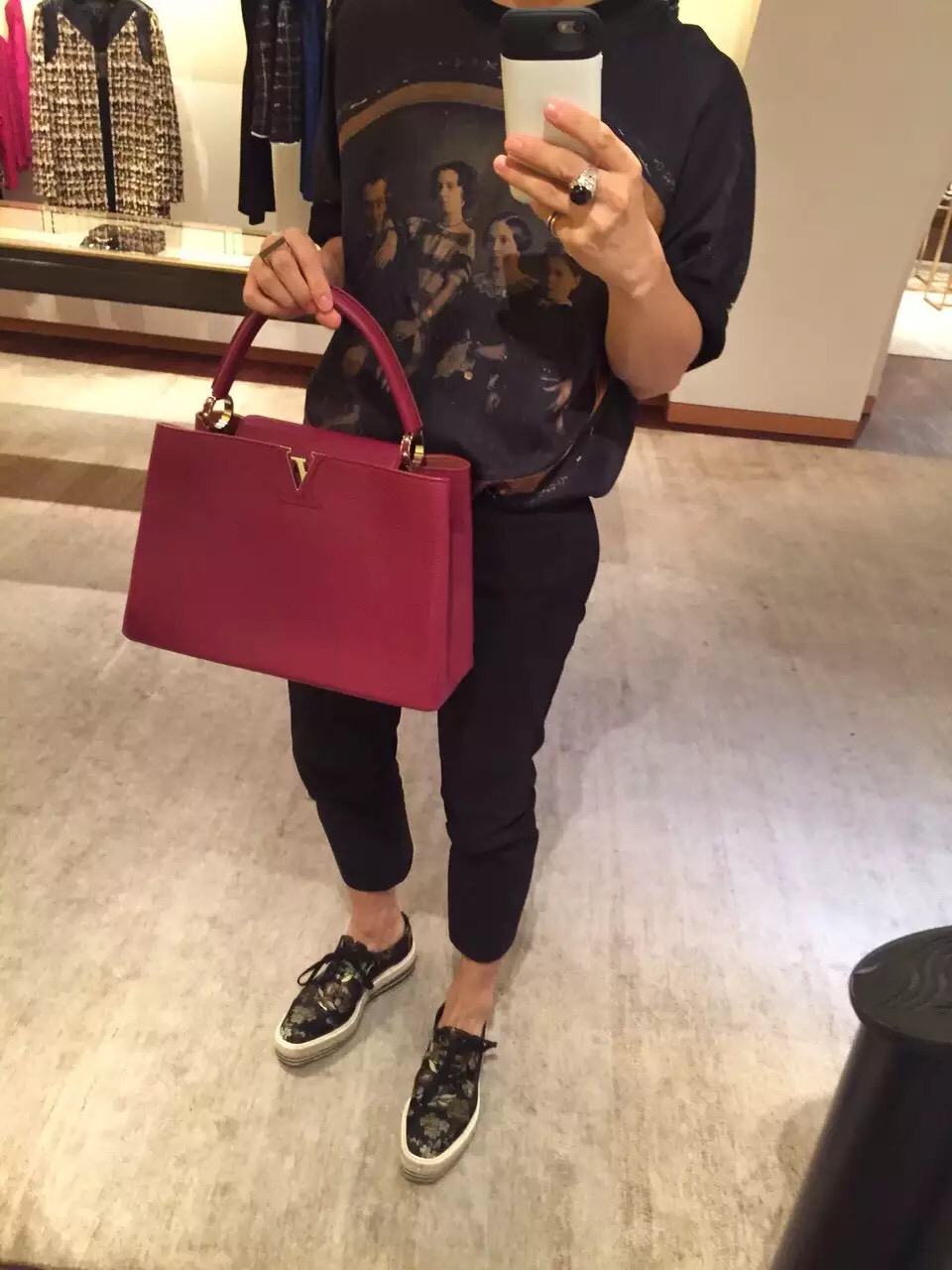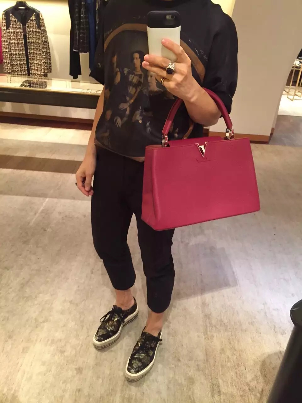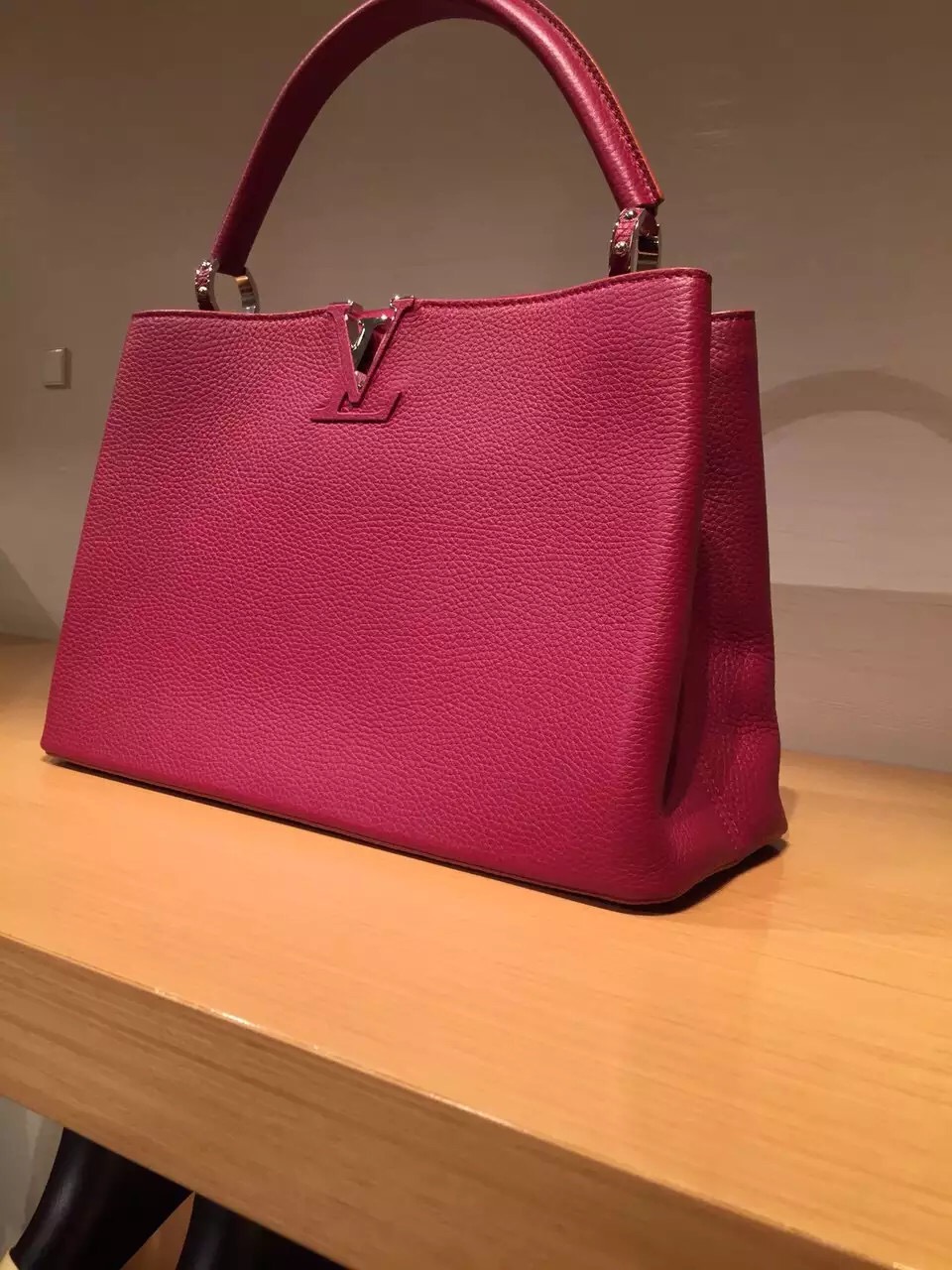 Taking its name from the Rue des Capucines in Paris, where Louis Vuitton opened his first store in 1854, the timelessly elegant Capucines bag is a testament to fine leather craftsmanship. In full-grain Taurillon leather, it combines refined details, including a semi-rigid handle secured by jewel-like rings, with a spacious and functional shape offering two inside compartments. Its distinctive flap can be worn two ways: outside to reveal the outline of a Monogram flower, or inside to show the LV initials.
