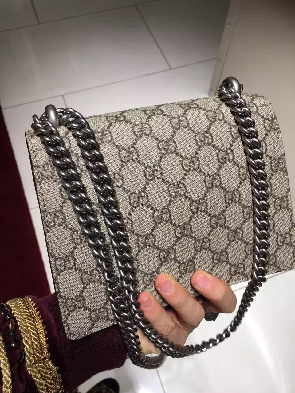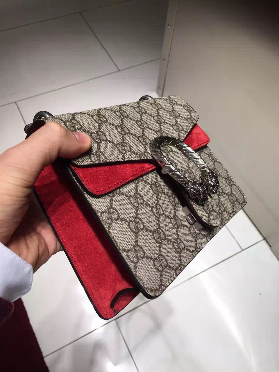 Gucci Dionysus Mini Bag with our textured tiger head spur closure. The sliding chain strap can be worn multiple ways, changing between a shoulder and a top handle bag.
